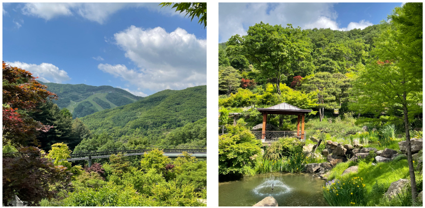 수국 군락이 푸른 비단길처럼 자태를 뽐내는 수국원을 비롯하여 화담숲 원내 다양한 포토존이 마련되어 여름 여행의 인생 사진을 남기기에 그만이다.