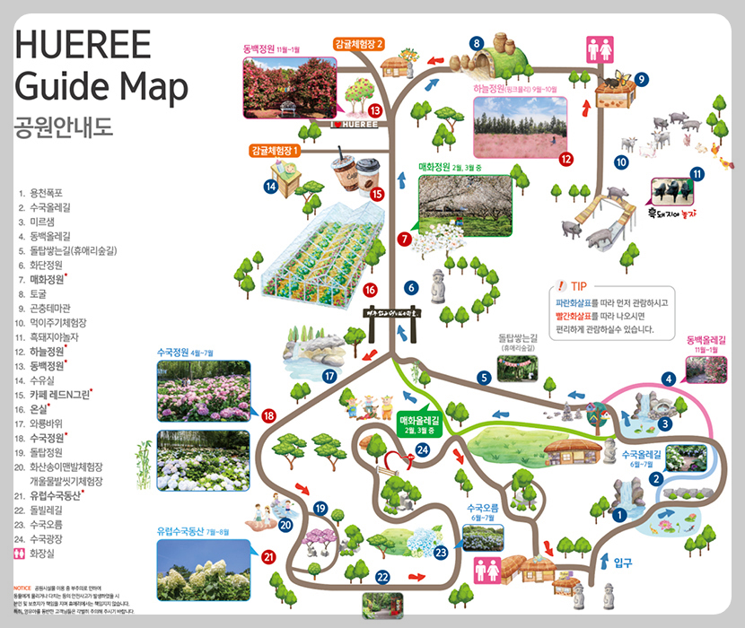 21. 유럽 수국 동산 22. 돌빌레길 23. 수국오름 24.수국광장