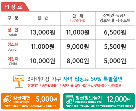 ③ 어린이 10,000원/단체 8,000원/제주도민, 장애우대 5,000원