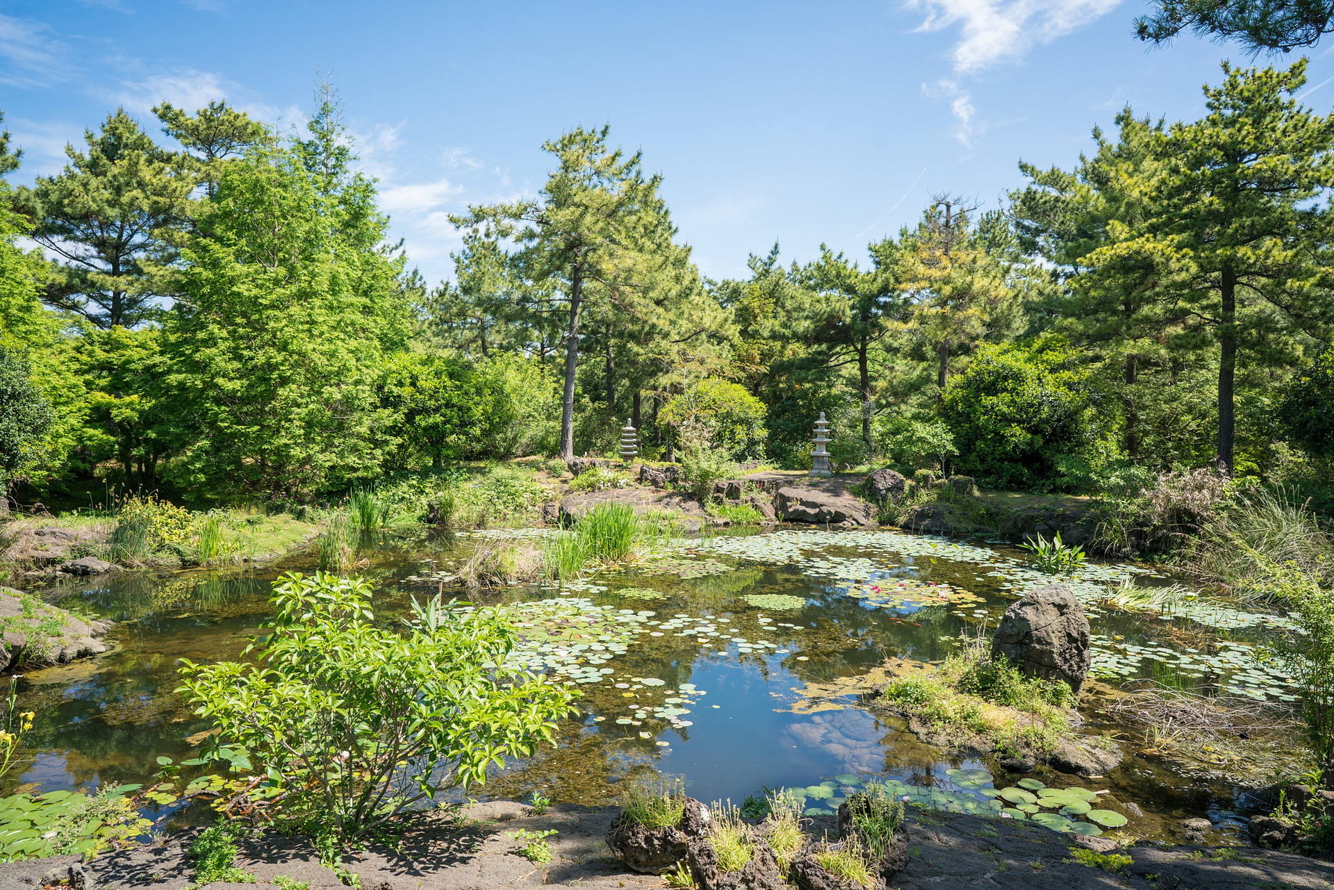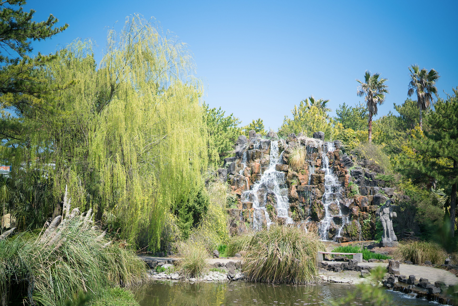 천연 용암 암반 위에 자연지형을 최대한 살려서 환경친화적으로 조성한 곳이다. 시원한 대형 폭포와 더불어 연꽃과 수련 등 다양한 수생식물들을 감상할 수 있다.