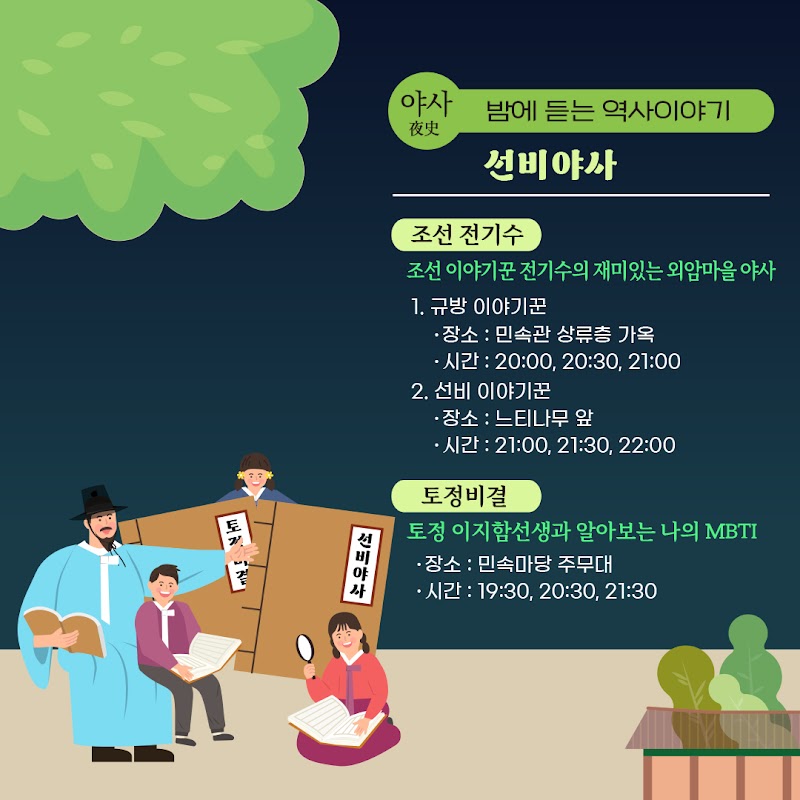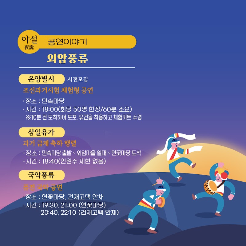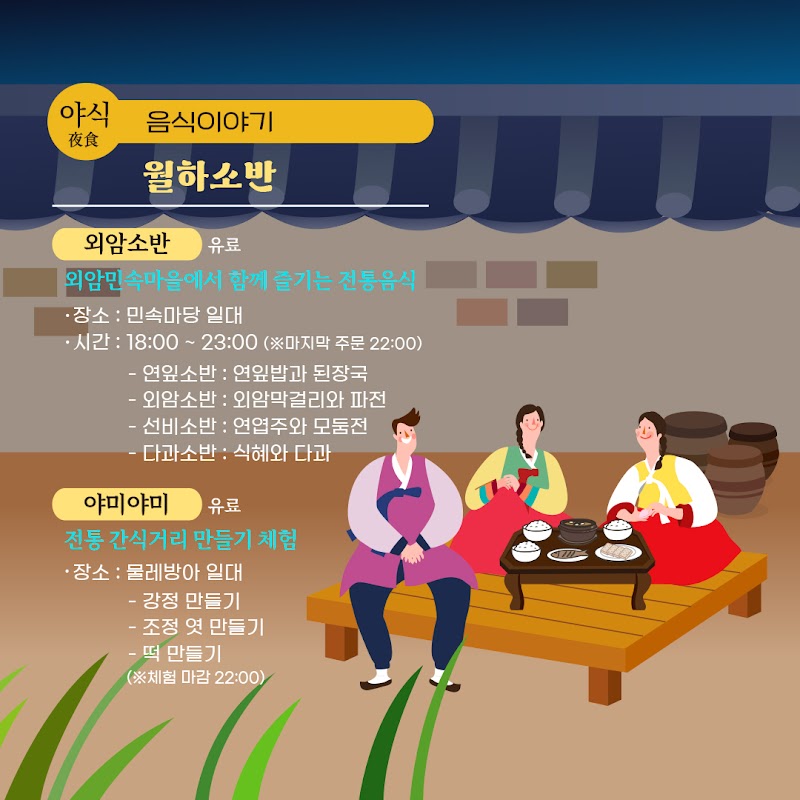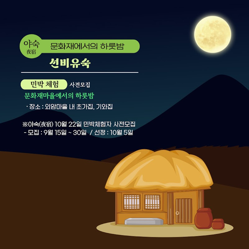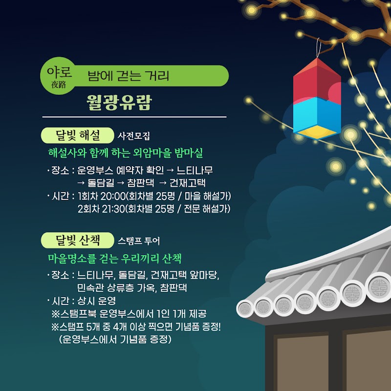 - 달빛 해설 : 마을 이장, 해설사와 함께 하는 외암마을 밤마실