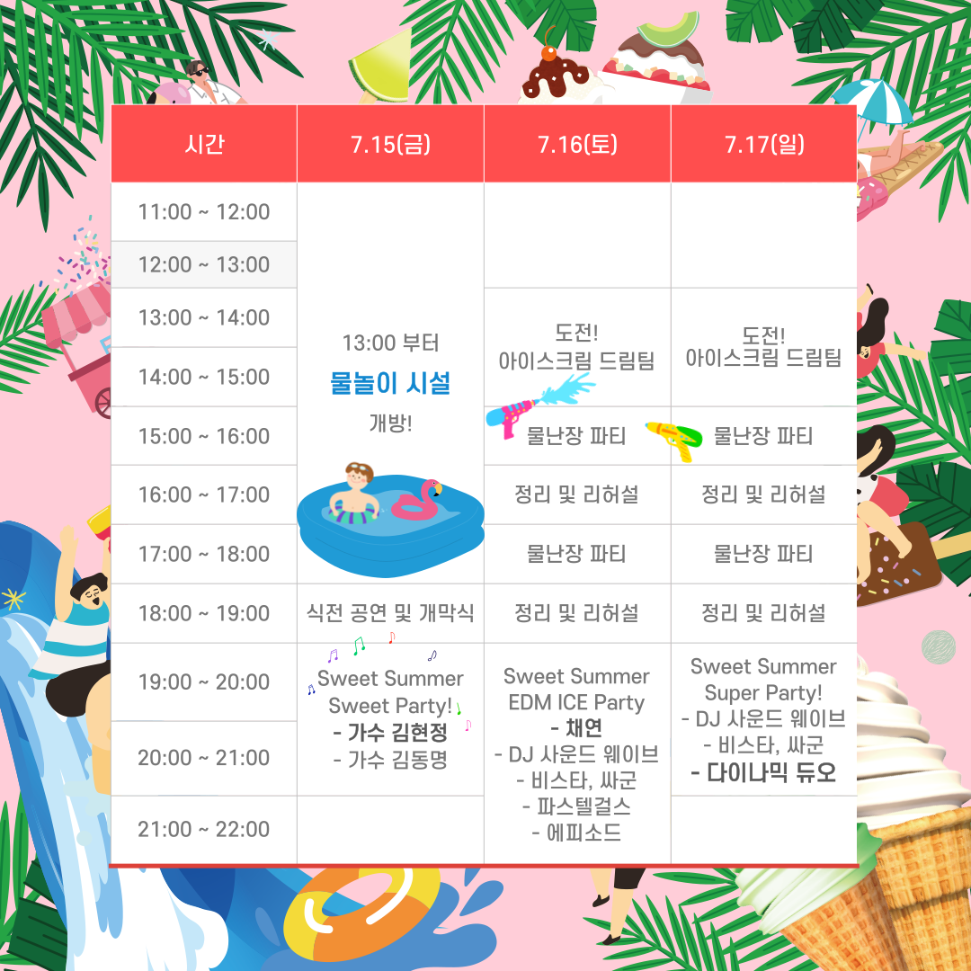 | 공식(1) | ▶ 개막식(7. 15. 금 18:00) | 2022. 7. 15.(금) 13:00 물놀이 시설 개방 |
