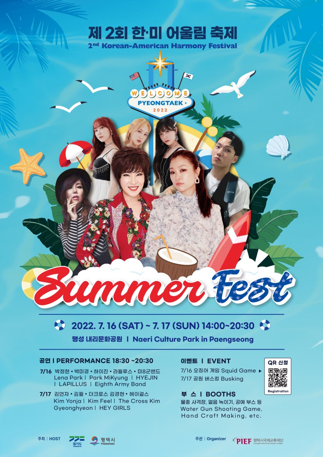 한·미 어울림 축제는 주한미군 가족과 시민이 함께 즐길 수 있는 평택시 대표 문화 축제로 여름을 테마로 한 '썸머 페스트'라는 주제로 올해는 자연 친화적인 장소 내리문화공원에서 진행된다.