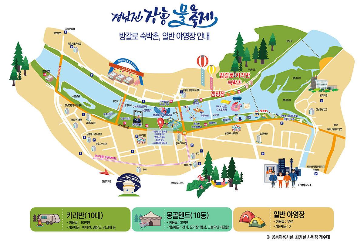 장흥 고쌈줄당기기의 명맥보존 | 장흥교 하부 7. 30.(토) : 장흥군 10개읍면대항 7. 31.(일) : 전국줄다리기 대회 (대한민국 줄다리기 협회 유치) 8. 1.(월) ~ 8. 4.(목) : 일반 관광객 이벤트 등