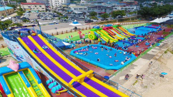 ▷에어바운스 풀장을 마련하여 워터플레이존 구성, 유료 튜브 대여소 운영
