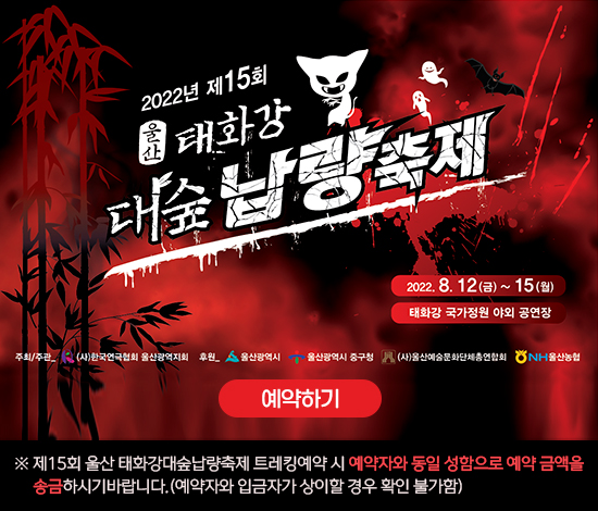 12일부터 15일까지 태화강국가정원 야외공연장과 대숲 산책로 일원에서 ‘제15회 울산시 태화강대숲납량축제’를 한국연극협회 울산시지회가 개최한다.