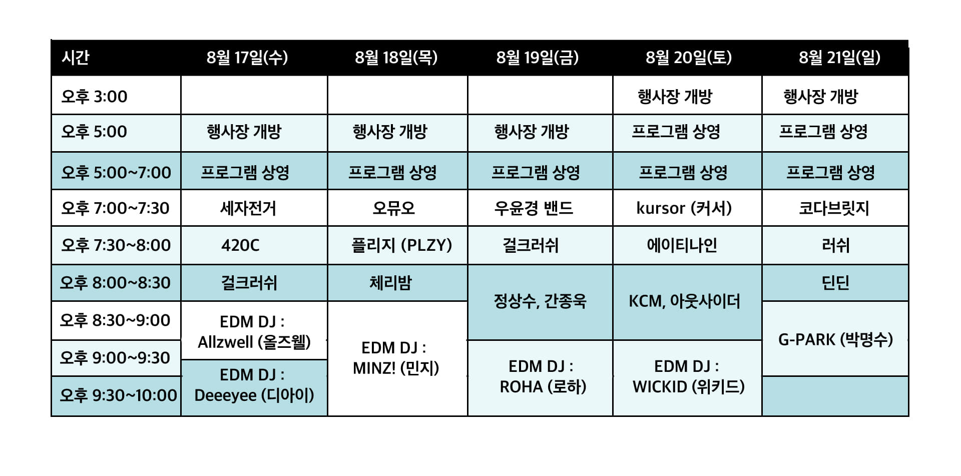 뮤직라인업_Music Line Up